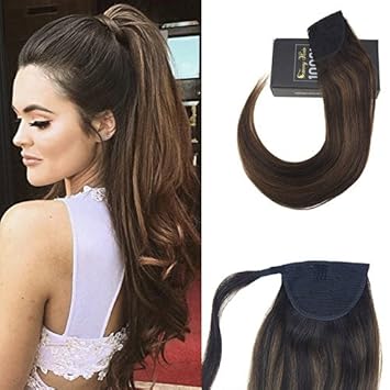 Sunny 16inch Clip In Ponytail Hair Extensions Dark Brown Highlight With Medium Brown Human Hair