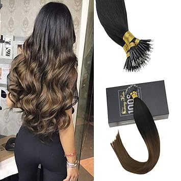 Sunny 18inch Nano Ring Hair Extensions Ombre 1b Natural Black Root To Dark Brown Real Human Hair