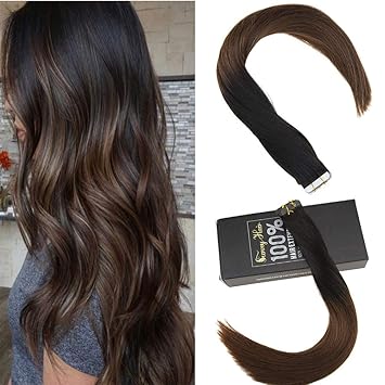 Sunny 18inches Tape In Hair Extensions Remy Hair Balayage Natural Black Fading To Dark Brown Highlight