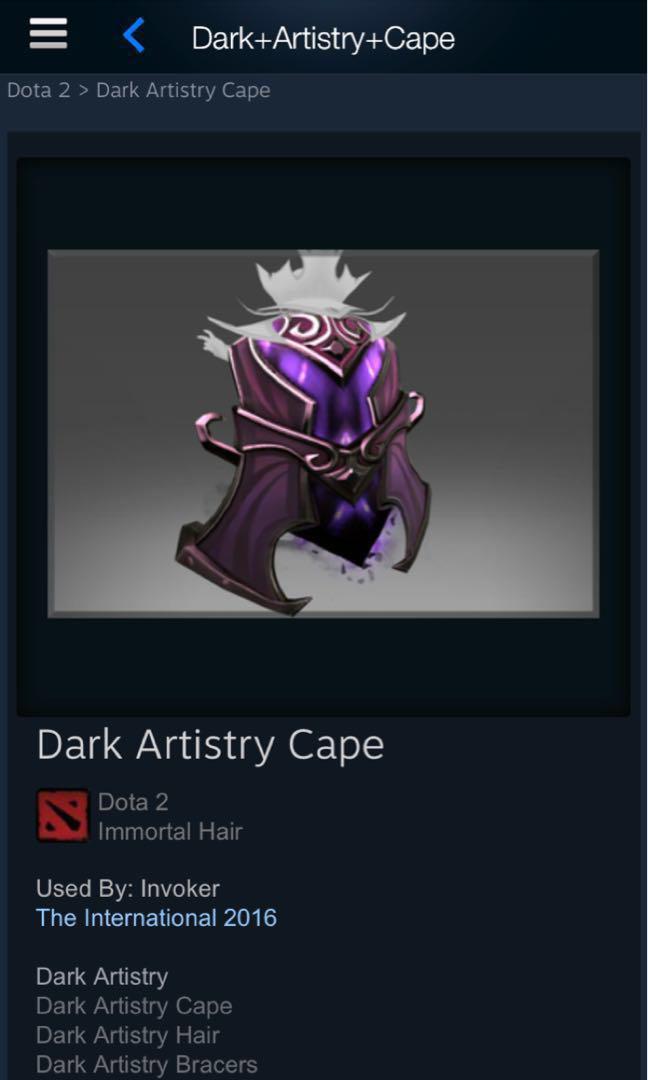 Buy Inscribed Dark Artistry Cape From Dota 2 Payment From