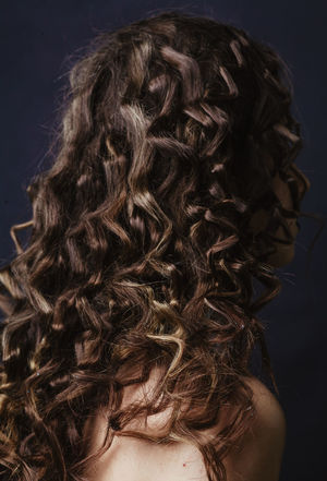 Hairstyle Of Long Curly Hair From Back To Black Background