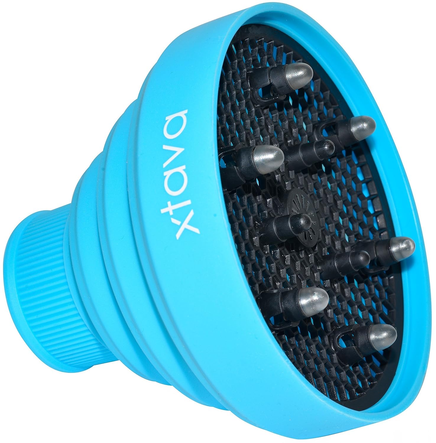 Xtava Collapsible Silicone Hair Diffuser For Blow Dryer Smart Folding Design For Easy Carrying And Storage Blue
